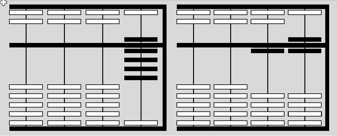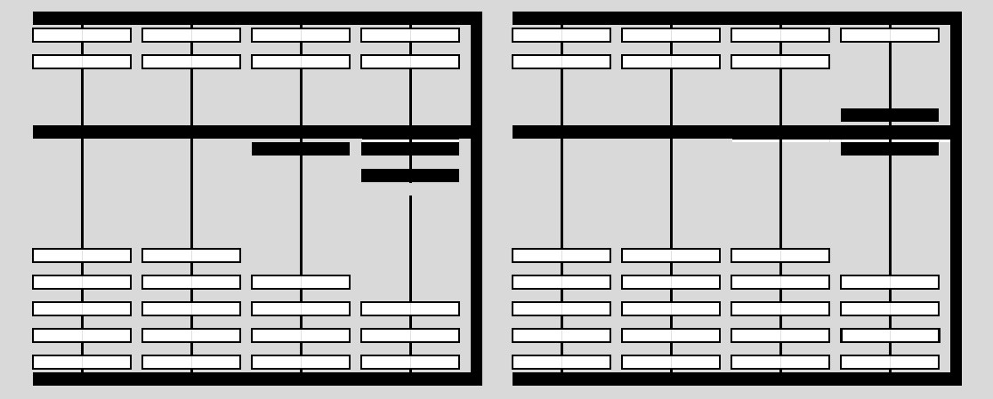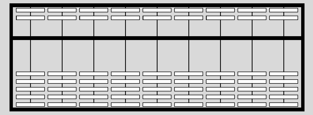 Elke rij heeft 7 houten kralen: 2 boven de dwarsbalk (de bovenkralen) en 5 onder de dwarsbalk (de onderkralen).