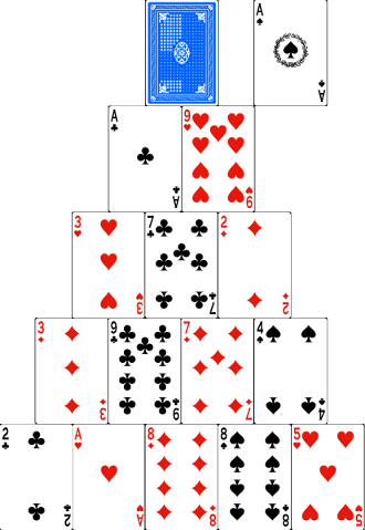Gebruik van een kaartspel de kaarten aas, 2, 3, 4, 5, 6, 7, 8 en 9.